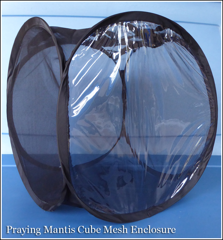 This pop-up, free-standing praying mantis cage is similar to the mesh-style nymph enclosure shown above,